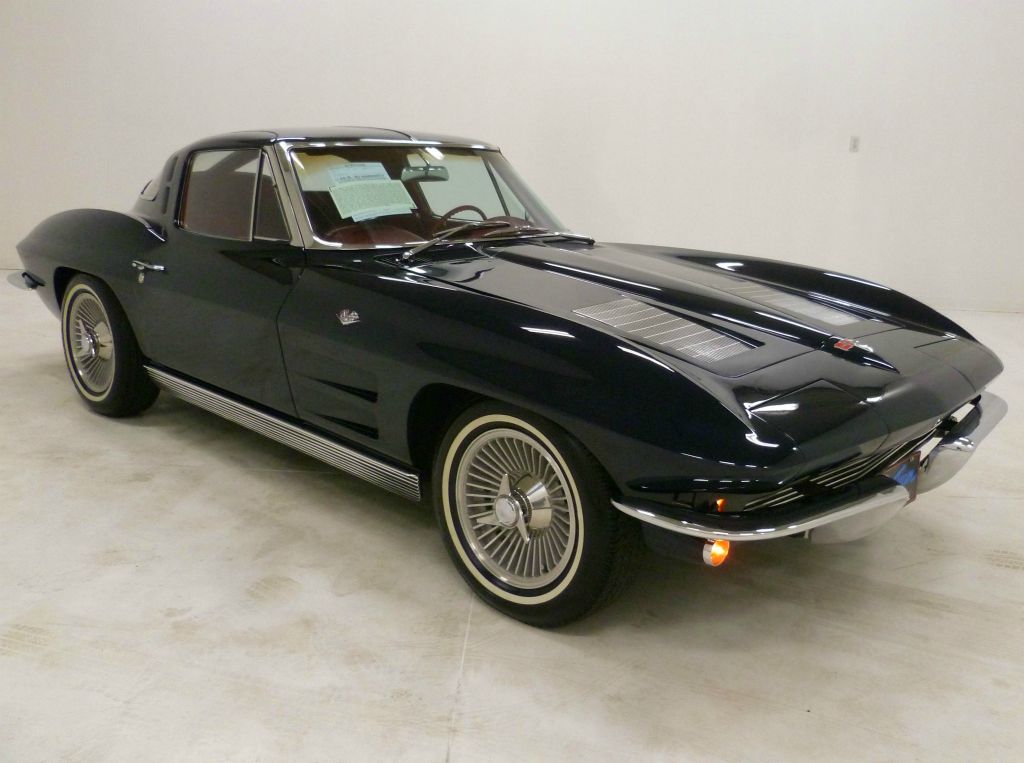1026T..1963 Corvette "Triple Diamond" Split Window Coupe, 327-360 hp, fuel injected, 4 speed, numbers matching motor, also has factory original body/trim tag, Rare born-with Tuxedo Black paint with Saddle Tan interior with a CCAS/Grenning Trim Tag Affirmation. This color combination is quite rare and desirable as I've only seen two or three in my 53 years of buying, selling and collecting Corvettes. Comprehensive professional body-off restoration by The Bowtie Shop (Joe Scafidi) in Billerica, MA resulting in a plethora of awards that include Bloomington Gold, NCRS Top Flight, MCACN Gold Concours, MCACN Triple Diamond, AACA National Senior award first prize winner and AACA Senior Grand National winner. The expenses involved in obtaining these awards could surely exceed $20,000.00. These type restorations normally cost between $150,000.00 to $200,000.00. Optioned with power windows, leather, T-10 transmission, 3.70 posi, Wonderbar radio, fuel injection, off road exhaust, early 1963 hubcaps and 6.70x15" vintage blackwall Firestone tires. Most all factory correct type components including the spare, jack, jack tools, shocks, seat belts, washer system, tar top battery, shifter, shielding, air cleaner, alternator, distributor, idler pulley, spark plug shields, hoses, hose clamps, F.I. unit, F.I. fuel filter, starter, 6-qt. oil pan, finned balancer, exhaust heat shields, expansion tank, radiator, gas door assembly, long base bowtie mirror, glove box door, cookie tin hood, owners manual, sales brochure, and T-3 headlights. Documented with the CCAS/Grenning Trim Tag Affirmation, judging award certificates, Bloomington Gold judging sheets (showing a loss of only 150 points in 2021), owners manual packet... all organized in a 3-ring binder. Early production car (VIN 1022) with a production date of October 6th, 1962 and delivered new by Don Allen Midtown Chevrolet in Manhattan, NY (dealer code 0 in zone 27) per the official NCRS/GM Shipping Data Records. Today, the one-year only split window remains one of the most iconic designs in the history of the American automobile. Today, the one-year only split window remains one of the most iconic designs in the history of the American automobile. Looks, runs, and drives excellent and by the way, this car is absolutely stunning. CC:1 Consigned to Mecum Kissimmee Collector Car Auction January 15th - 17th, 2026