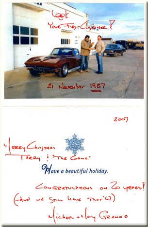 Dear Chad, Lora and I would like to thank you for the tour of your facility and taking time to answer any questions.This was our first visit to your facility and we did not have an appointment. The selection available at proteam is incredible and is helpful when thinking of a model and color. Again, thank you for taking the time on that saturday and we look forward to visiting you soon. "Hi Christine, You sure can. You organized to ship my car here in 1996. It was absolutely no-hassle, problem-free. Truck to the port, then RO-RO. It wasn’t even expensive! Anyway, I appreciate the regular updates from you guys – you’re all a class act! " "Terry, We have never met but I have been a frequent visitor on your website for quite some time and have tried to learn as much about corvettes, especially mid-years as I can. Thanks to you sharing your knowledge with people like myself who appreciate these cars. You have made your hobby your business and I know there is alot of jealousy toward anybody that can do this. With buying and selling corvettes for so many years your knowledge is far and above other corvette enthusiasts. I have never visited Pro Team but hope maybe someday to do so. Thanks again for sharing your knowledge and experiences and hats off to you Terry, you did it your way." "The process was done over the phone. It was very professional from the time the phone was answered, the sale, the delivery, the title, and goodies... and now this. If I was to purchase another Corvette, because of this experience, I would shop ProTeam. It's a matter of trust. ProTeam has a great reputation and knows 'Vette's better than most. Also, the return policy takes the worry out of not liking the car. The process was very fair. Thanks." "Dear Terry, as I sit at my desk in my business of 24 years, I am amazed at your unbelievable collection of Corvettes. I also laugh when someone is trying to outbid you at the auctions. If you want the car, you get it. My old picture of my 1969 350-350hp Riverside Gold Convertible with 22,000 miles on it when I sold it sits beside me at my desk. I miss my car. Going through your catalog, I calculated you are saving customers $2,696,000.00 with your sale prices from 1953 to 1967. Way to go. I commend your effort to make the cars for sale at better prices. Of course, we older guys with too many bills still can't do it. When I hit the lottery, I promise you I will be out to get a 1967 and that Grey LT1 you have (139Z)... for some reason, that piece really moves me. Keep up the great service you do and most of all, stay healthy. That's what life is all about." "Hello Terry, I received the '62 Fuelie I bought from you, this past weekend. I am very pleased with the car. Your salesman was very professional and was honest in his description. It was a pleasure working with him. I buy/sell many cars as I am always changing up my personal collection, but this is the first experience with ProTeam. I hope we can continue to do business together in the future. Best Regards," "Terry, I wanted to let you know how much I appreciate your graciousness in taking the time to talk to me and impart your knowledge and insight to me. I really enjoyed meeting you and Fred. It was an enjoyable experience. Thanks." "I thought your presentation (Al Grenning at ProTeam Corvette November 2008) was one of your best ever. The new material presented (especially the M22/L88 stuff) was not only entertaining, but represents some of the most important research in the field of classic Corvettes in many years. Its apparent that a great deal of analytical detective work was required to locate and make logical sense out the maze of GM paperwork from this period. Its quite a story--worthy of a book in its own right. I was also highly impressed by the people (Bill, Kevin et al) who spent their own money to bring some very significant cars to the event. This dovetailed nicely with your presentation, and everyone seemed to enjoy looking at these cars and hearing their stories. The seminar raised almost $1,000.00 which will all go to charity. At this point it looks like the money will go to either the Columbus Children's Hospital or breast cancer research. The Heart of Ohio Chapter is thrilled to have been able to play a small part in the success of this event." "We were impressed with your "ONLY IN AMERICA" paragraph [ProTeam eZine 11-5-2008]. This mailing has the sole purpose of promoting your business and SELLING but you took the time to reflect on what a great country we have. Thank you for the nice comments we so desperately need at this time of economical and political turmoil. Our new President Elect cannot cure the eight year decline in our economy overnight but attitudes like yours' in showing your patriotism and support is a step in the right direction. More business people should do the same. We were also glad to read your comments on Barrett-Jackson. We could only attend the Friday auction and felt the prices were somewhat down. It's nice to hear that things improved on Saturday. One observation we made was that in comparison with Kruse (Auburn Auction) the Auctioneer had a special way of getting the bidders back in after a lull in bidding. We were much more impressed with their teamwork on the auction block. They were there to sell cars and not to chit chat with small talk during bidding as we have noticed in Auburn. Thanks again for your written support in the direction the U.S.A. is taking." "Dear Fred, Thank you for taking the extra time with me on Saturday to go in, around, and under my "new" car. I especially appreciate your patience in answering all of my questions about care and maintenance. The first weekend involved many joy rides and a smile so big my face still hurts, Your group at Pro Team Corvette is top notch, and it shows. The car looks awesome, sounds great, and drives wonderfully!! My Mom was a bit teary eyed seeing the car returned to her original glory and knowing Dad was smiling do
